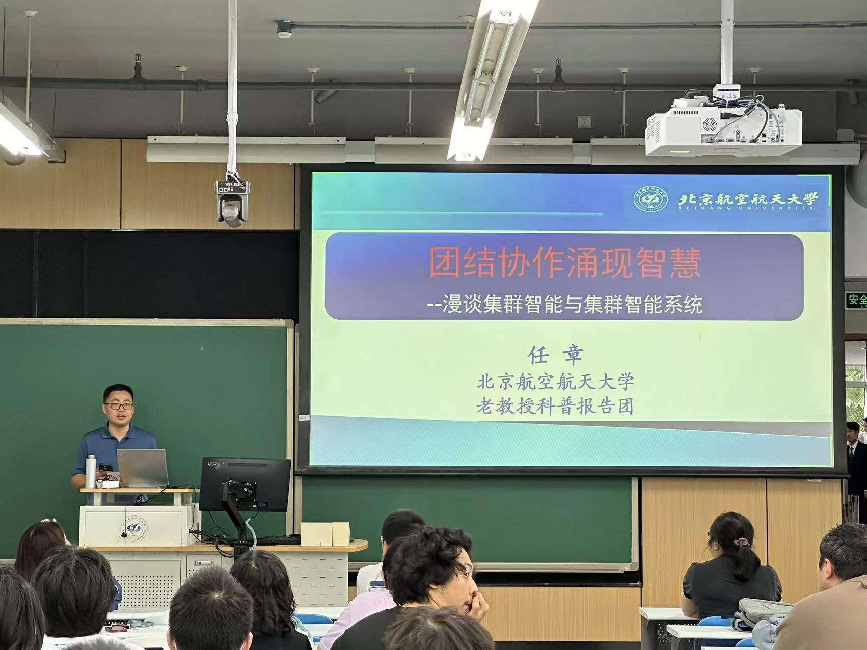 讲座结束后,在场的同学踊跃提问。面对大家提出的问题,如我们目前应该集中在哪个模块进行深入分析,仿真和实验如何更好结合等,任章教授都给出了细致深入的解答。通过此次讲座,同学们对生物集群和集群智能的实际运用等问题有了更多、更深层次的理解。
