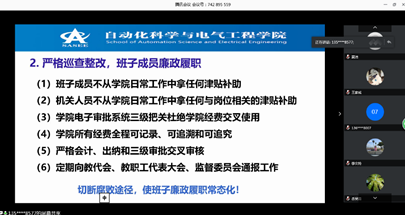 最后王少萍书记阐述了学院反腐倡廉新举措,一是构建监督机制加强制度建设,将权利和资源关进制度的笼子里,二是严格落实巡察整改结果,切断腐败途径,使领导干部廉政履职常态化,三是落实院党委主体责任和纪律监察委员会监督责任,随时接受学院的全体教师进行监督和检查。