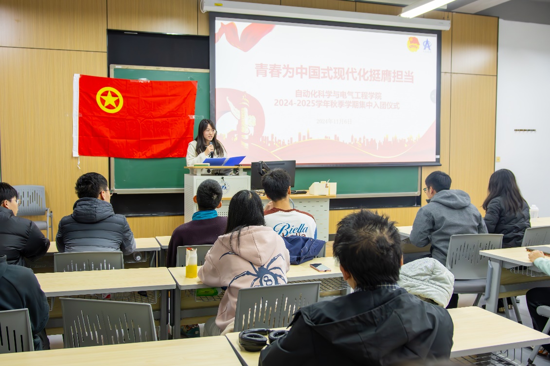 为深入学习贯彻习近平总书记五四重要寄语精神,引导广大团员青年坚定不移听党话、跟党走,11月6日下午,世界杯体育官方网站在新主楼D215举办“青春为中国式现代化挺膺担当”2024-2025学年秋季学期集中入团仪式。学院团委书记乔娇,兼职辅导员、思政教育中心指导教师吕子良,学院团委、各团支部新老团员代表30余人参加。仪式由江津同学主持。