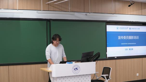 学生会宣传二部负责人熊昱博围绕新闻摄影规范展开讲解,在构图、用光及主题表达等方面指出了常见问题与改进方向。