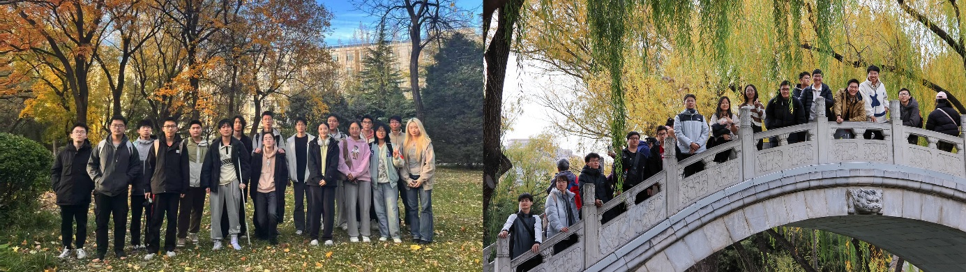 实践育人,是共青团建设发展的关键。240311与240323团支部组织团员分别前往紫竹园、颐和园、地坛等地,开展“感悟秋韵·践行初心”主题团日活动。同学们走进秋日园林,在实地走访中追忆红色岁月,感悟城市文脉。通过现场交流与实践体验,深化了对革命精神的理解,并用镜头记录古都秋韵,完成"秋日·历史·传承"主题影集。此次实践活动增强了团员的历史认同与文化自信,展现出基层团组织的活力与凝聚力。
